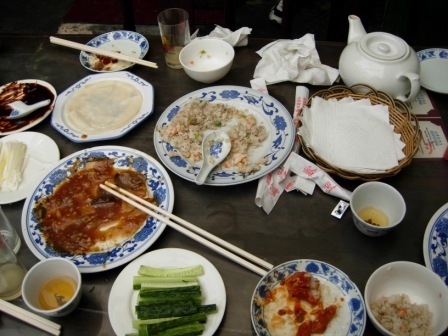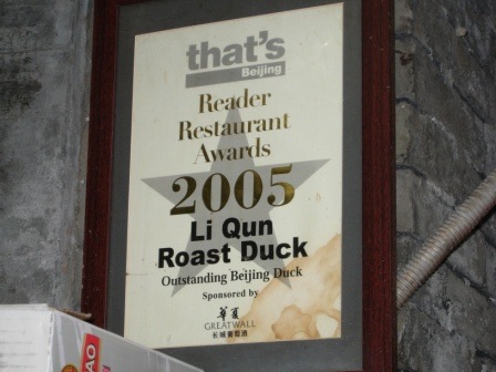 Getting there, we were dead scared that the taxi driver was going to drive us down the alley to mug or kill us, but we saw funny drawings of ducks and we understood what duck heaven (or hell for the ducks) was like. Best have lunch here rather than dinner, where the alleys would make safety a little more than questionable. It was a little less than a five minute walk to get to the main road to find a taxi. But this place is close to Tianenmen Square, so you can do the Forbidden City in the morning then have lunch here. It’s best to go with a couple of friends, otherwise you can only have one dish.