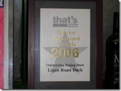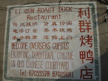 Getting there, we were dead scared that the taxi driver was going to drive us down the alley to mug or kill us, but we saw funny drawings of ducks and we understood what duck heaven (or hell for the ducks) was like. Best have lunch here rather than dinner, where the alleys would make safety a little more than questionable. It was a little less than a five minute walk to get to the main road to find a taxi. But this place is close to Tianenmen Square, so you can do the Forbidden City in the morning then have lunch here. It’s best to go with a couple of friends, otherwise you can only have one dish.